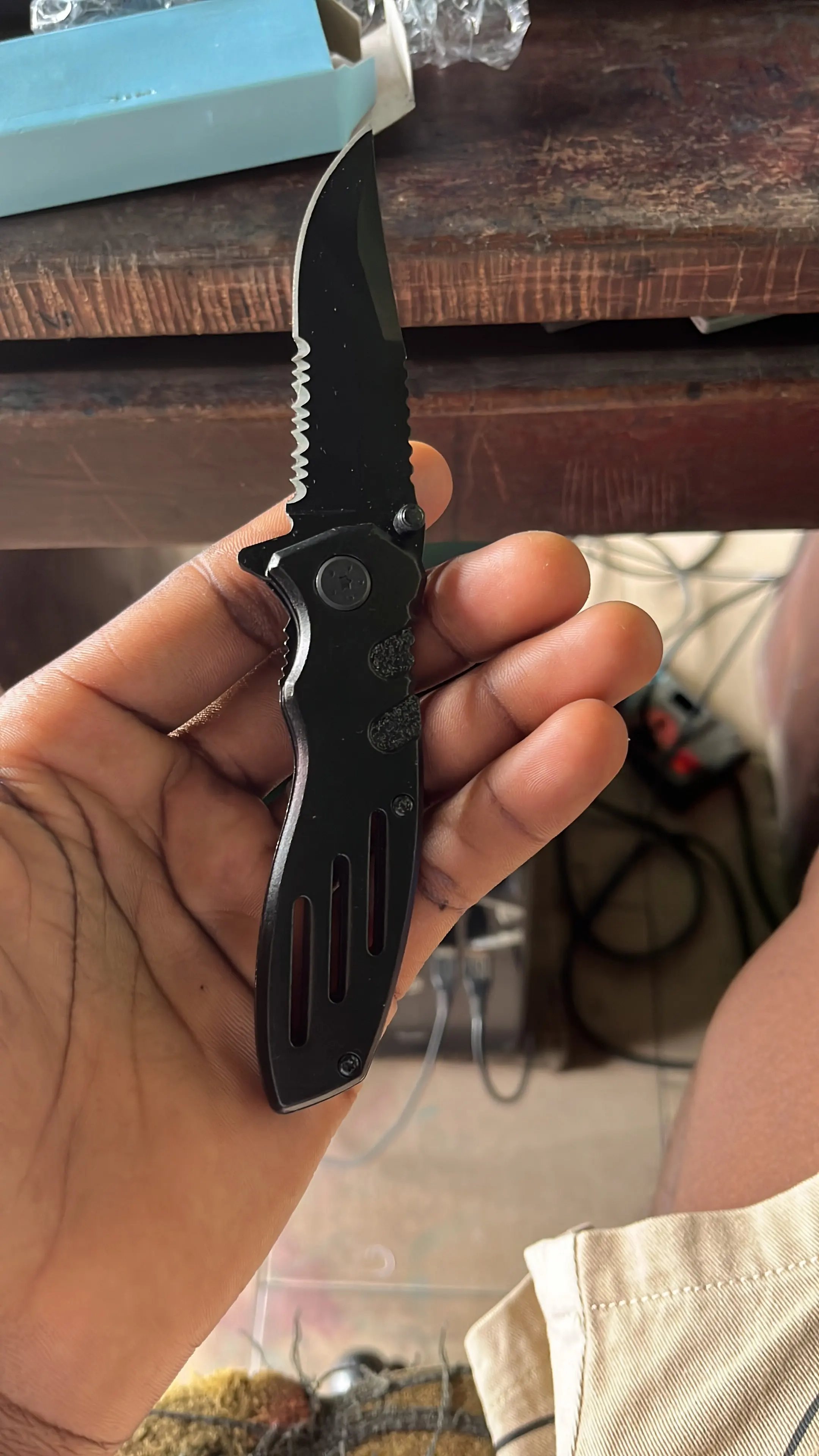 Bochen התאמה אישית ציפוי שחור oem פלסטיק ידית כיס הישרדות טקטי חיצונית קיפול סכין זמינה